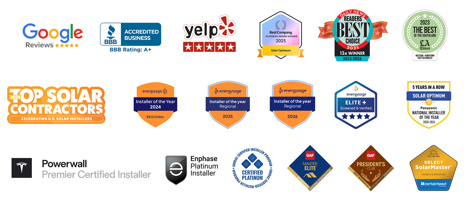 Going solar is a big decision — which is why it’s important to choose an installer you can trust. We are proud to be a top-rated solar panel installer with thousands of 5-star customer reviews and numerous awards, certifications and accreditations under our belt. When it comes to choosing a trusted energy partner, Solar Optimum is the #1 choice.
